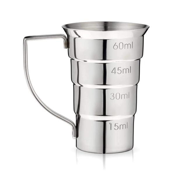 Compared with traditional bar jigger, the stainless steel cocktail step cocktail jigger adopts a unique step design, allowing users to easily and accurately measure the different capacities required for various cocktail recipes, thereby ensuring that the taste and taste of each cocktail can be perfect. state. Additionally, its finely graduated numbers and clear markings allow users to quickly read the required liquid volume without hesitation or guesswork.